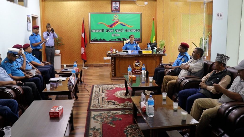 २६ जेठ, हेटौँडा । बागमती प्रदेश प्रहरी प्रमुख प्रहरी नायब महानिरीक्षक अरुण पौडेलले समाजमा शान्ति सुरक्षा कायम गर्न प्रदेश प्रहरी प्रतिबद्ध रहेको बताउनुभएको छ ।
