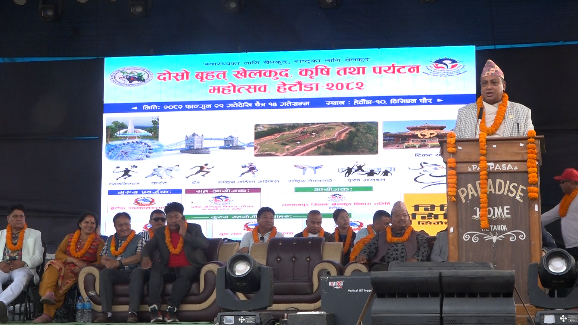 जिल्ला खेलकुद समिति मकवानपुरको आयोजनामा शुक्रबार देखि हेटौँंडा १० टिसिएन चौरमा सुरु भएको दोस्रो बृहत् खेलकुद, कृषि तथा पर्यटन महोत्सवको उद्घाटन गर्नुहुँदै मुख्यमन्त्री बानियाँले खेलकुदलाई व्यापार–व्यवसायसँग जोड्न नहुने बताउनुभयो । जुन उद्देश्यले खेलकुद विकास समिति स्थापना गरिएको हो, सोही अनुरुपको कार्य गर्नुपर्ने उहाँको धारणा छ । खेलकुदसँग सम्बन्धित कार्यक्रम सञ्चालनका लागि प्रदेश सरकारले आवश्यक सहयोग गर्ने प्रतिबद्धता पनि उहाँले व्यक्त गर्नुभयो ।