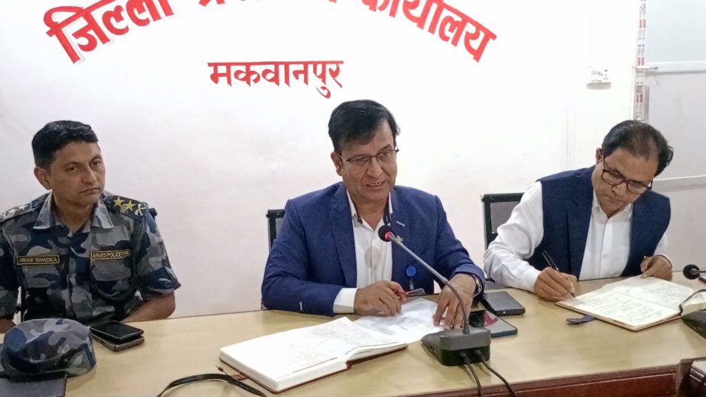 दुग्ध उत्पादक किसानको भुक्तानी रोकेका मकवानपुरका ११ डेरी उद्योग सहित किसानका प्रतिनिधी राखेर जिल्ला प्रशासन कार्यालय मकवानपुरले छलफल गराएको हो । सोमबार प्रशासनको सभाहलमा प्रमुख जिल्ला अधिकारी बसन्त अधिकारी, सुरक्षा निकायका प्रमुख, जिल्ला दुग्ध उत्पादक सहकारी संघका अध्यक्ष हरि कँडेल, जिल्ला सहकारी संघ लिमिटेडका अध्यक्ष नारायणप्रसाद देवकोटा, डेरी उद्योगका सञ्चालक एवम् व्यवस्थापकसंग छलफल गरिएको हो ।